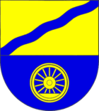 Blasonierung: „Geteilt von Gold und Blau. Oben ein schräglinker Wellenbalken, unten ein Lokomotivrad in verwechselten Farben.“